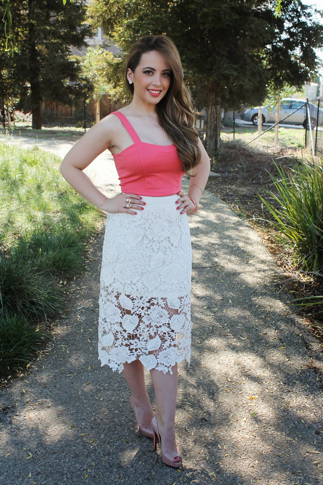 I am so happy to finally have found a lace midi! I’ve been in search for one and found this one at Forever21…I also purchased it in light purple. I am completely obsessed! Also this crop top was also purchased at forever 21 for only $7! Super deal!