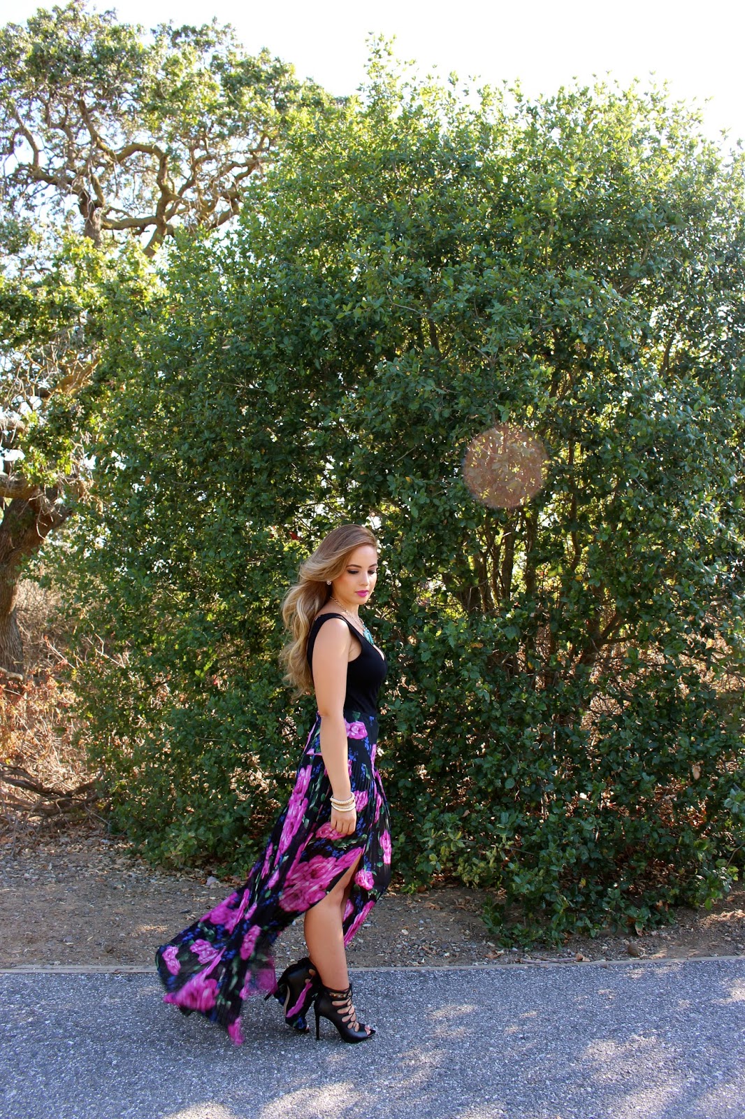 I can’t believe September is already here. This summer passed by faster than any other, and although I’m loving this sunny weather I’m definietly ready for the fall! I wanted to share with you this outfit of the day. This skirt is called the “Sunburst Maxi Skirt” from Tobi and I am so obsessed (can’t you tell by the pictures)! I love that it has two slits in the front which makes it easy to walk in. Also I paired it with a black bodysuit and some black lace up heels.