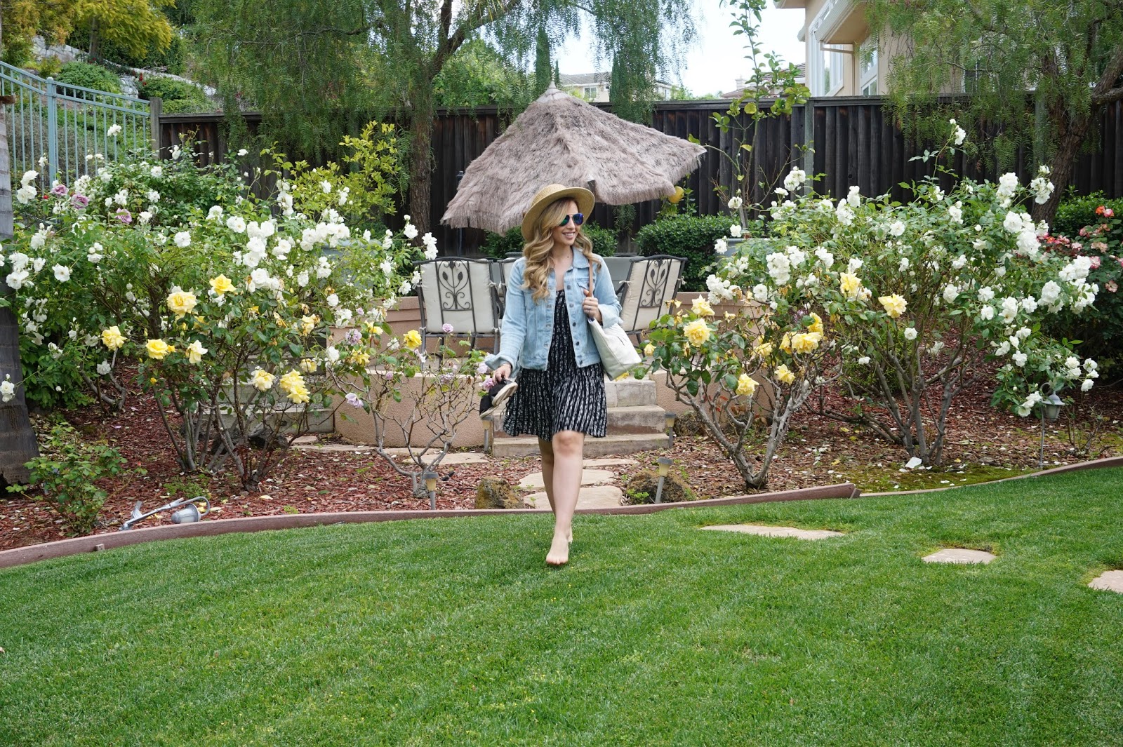 Now let’s talk about these cute flats! I just loved these espadrilles because of the color. Black matches with a lot of pieces, and they’re so comfortable. They also are lace ups, so that also adds a different touch to the shoes. Also this dress matched perfectly with the shoes and like I mentioned earlier I could mix and match it with a bunch of other items! It’s flirty, comfortable and fun! Paired with a jean jacket and this weekend bag and you have the cutest weekend outfit!