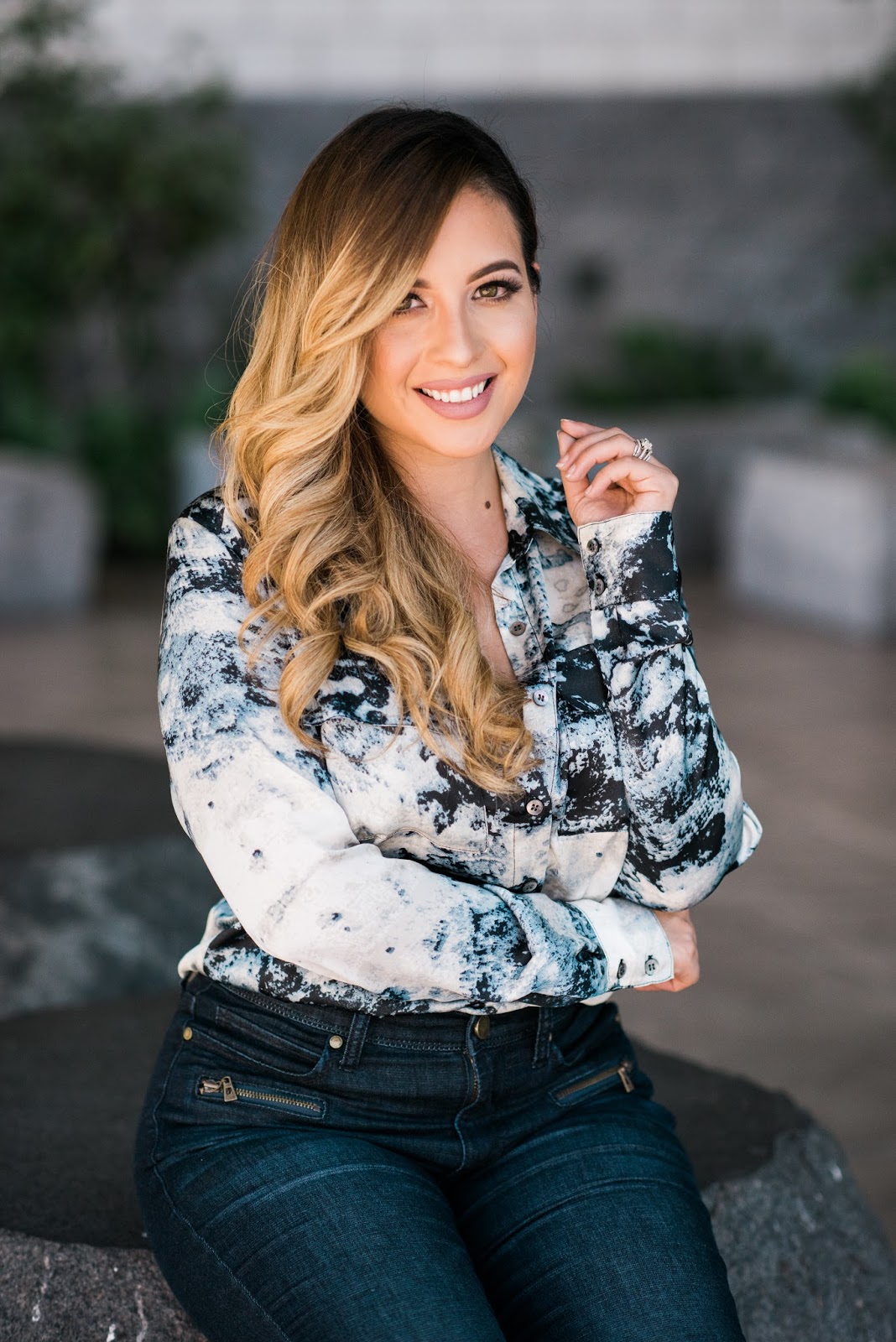 Ahora, déjenme decirles un poquito mas sobre las prendas que tengo puestas. Esta blusa me llamo la atención por el estampado. Es un diseño clásico, y el material es suave, ligero y se puede combinar con jeans, una falda lápiz o pantalones. Se puede utilizar para un ambiente profesional pero con estilo. Combine la blusa con estos pantalones de mezclilla y creó que es un look perfecto para un viernes casual. Los jeans son también una parte de la colección de Eva Longoria y son los pantalones más cómodos que tengo. Ser una mujer con curvas y encontrar unos pantalones que te queden bien y que sean cómodos puede ser difícil. Estos jeans son de un material súper cómodo y suave. Se ajustan a tu cuerpo para que te abracen perfectamente. También me encantaron los detalles del cierre y el lavado oscuro, que agrega la cantidad perfecta de estilo a los pantalones. Este atuendo puede ser usado para varias ocasiones y lo que me encanto mas fue la comodidad de la ropa!