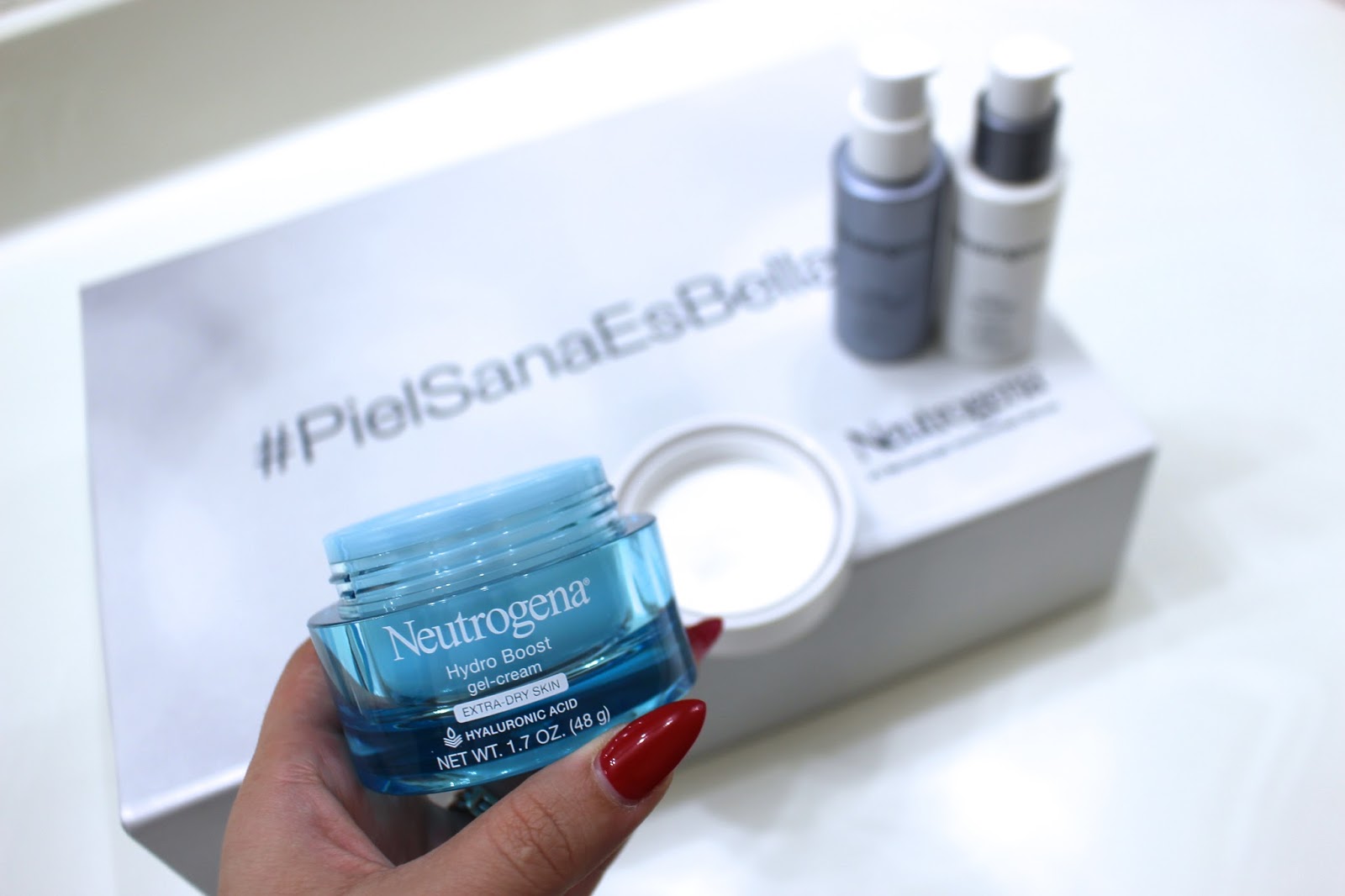 Neutrogena tiene una crema tipo gel llamada hydro boost gel, y funciona super bien, con su única fórmula en gel-crema. Se absorbe rápidamente en la piel como un gel, y es de larga duración, intenso y ayuda a retener la hidratación. Si tienes la piel seca, como yo, te encantará este producto! Me gusta aplicarlo por la noche para ayudar a reparar la piel durante la noche.