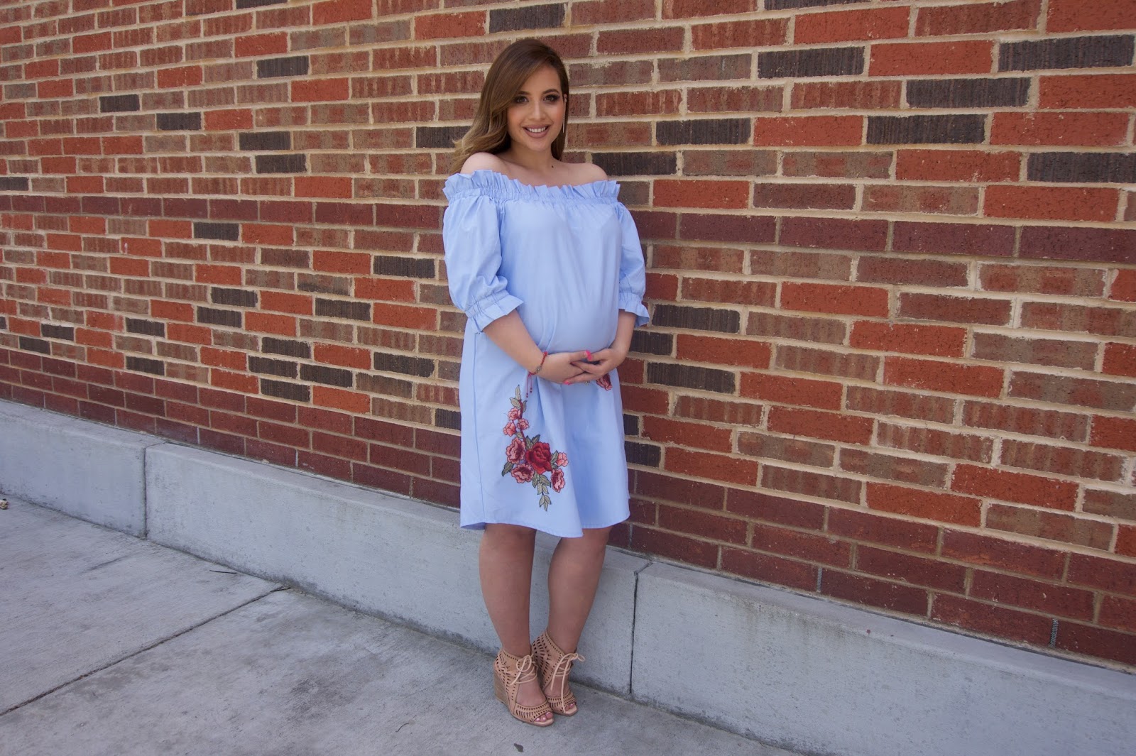 Hi Everyone! I couldn’t wait to share this dress with you because it’s so cute, it’s non-maternity, and so perfect for the hot weather. Also it’s under $25, and you all know I love a great deal. The dress is from SheIn. These wedges I’ve been wearing a lot they’re from Jeffrey Campbell, and I purchased them last year. Luckily, they are still available!